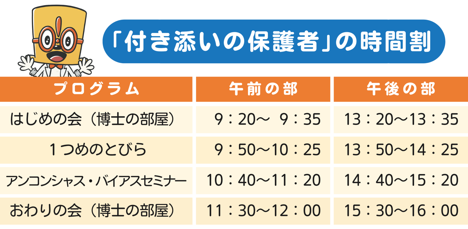 ※保護者の付き添いは、お子さま一人につきお一人まで